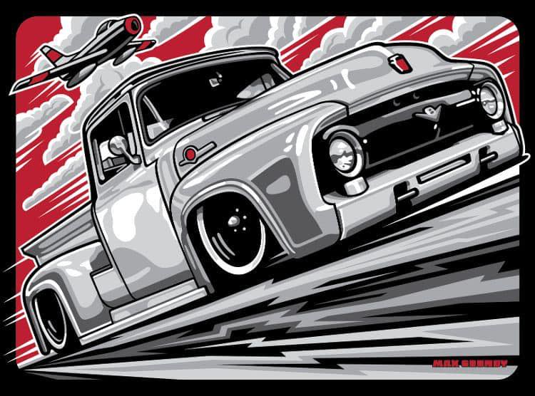 Max Grundy Design specializes in original artwork (paintings, prints, apparel), commercial illustration and logo design, and custom car building. He can be found vending at many car shows and automotive events around the world.