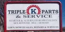 Triple K Parts & Service is a locally owned business that has been in operation for over 30 years. Products include rebuilt starters, alternators and small engines, lawn mowers with brands such as Grasshopper, RedMax, Troybuilt and mower parts such as blades, belts, oil and more. In addition to these products and services, we also service what we sell here at Triple K Parts & Service. Hours of Operation Monday - Friday 8:00am - 5:00pm